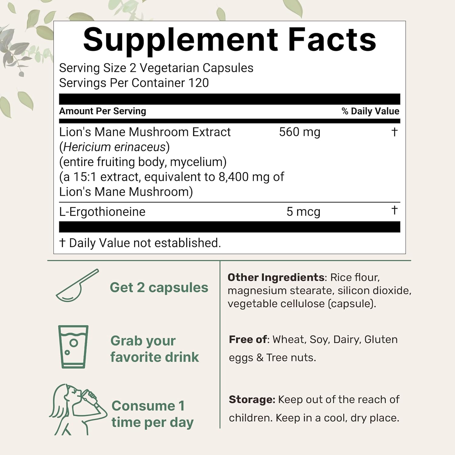 Equivalente herbal: 8.400 mg de hongo Lion’s Mane por porción.